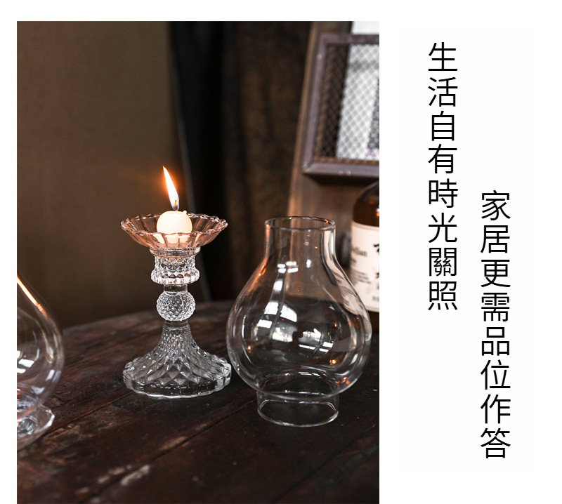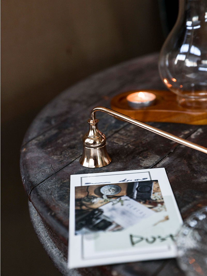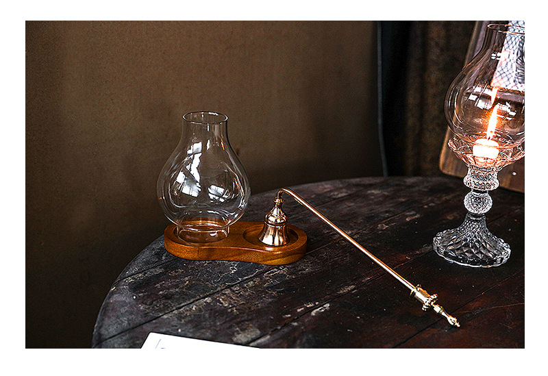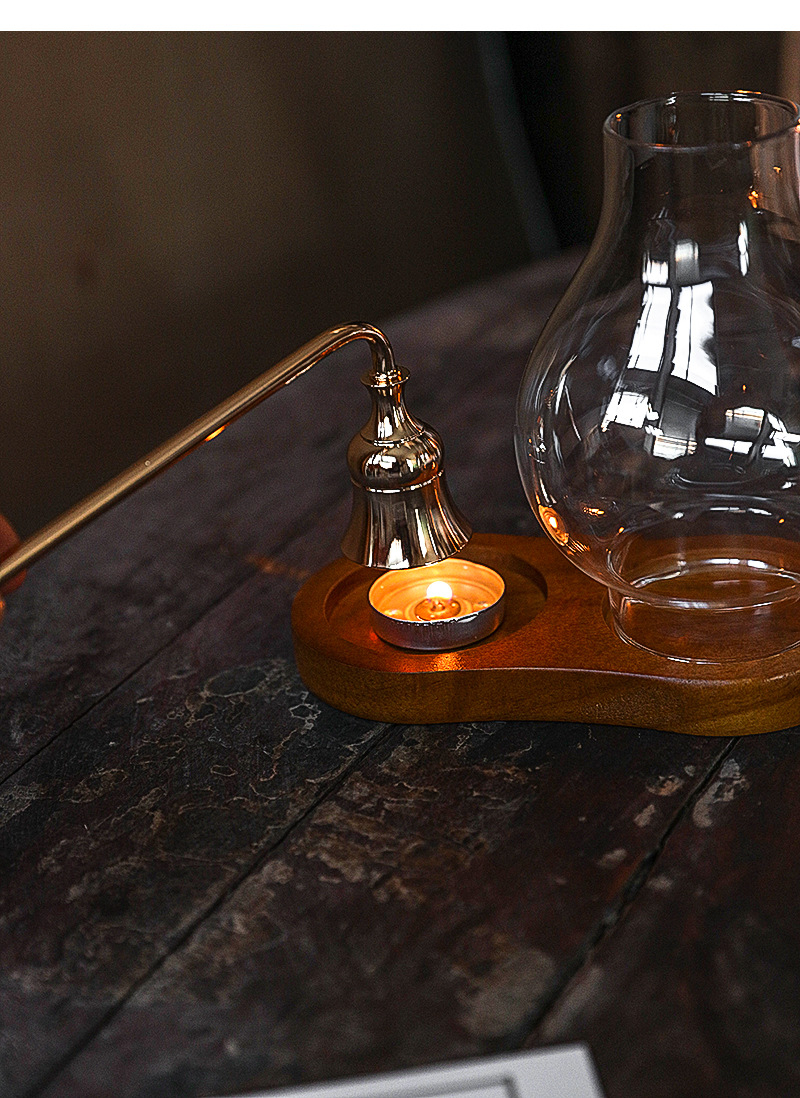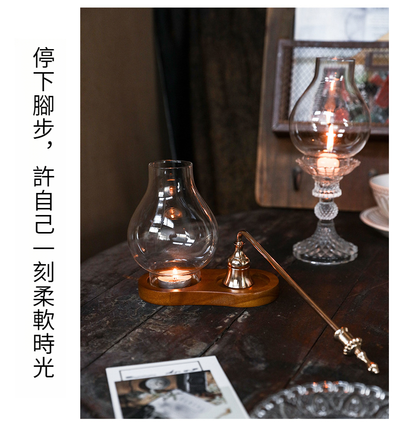 復古色兩格木底座+燭臺罩+滅燭鈴