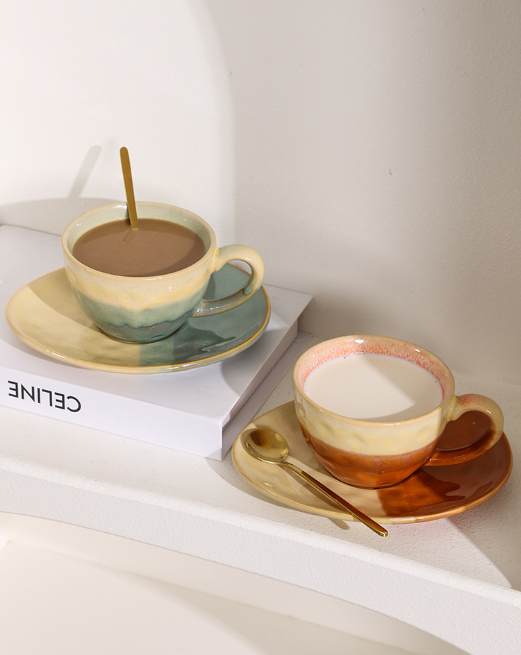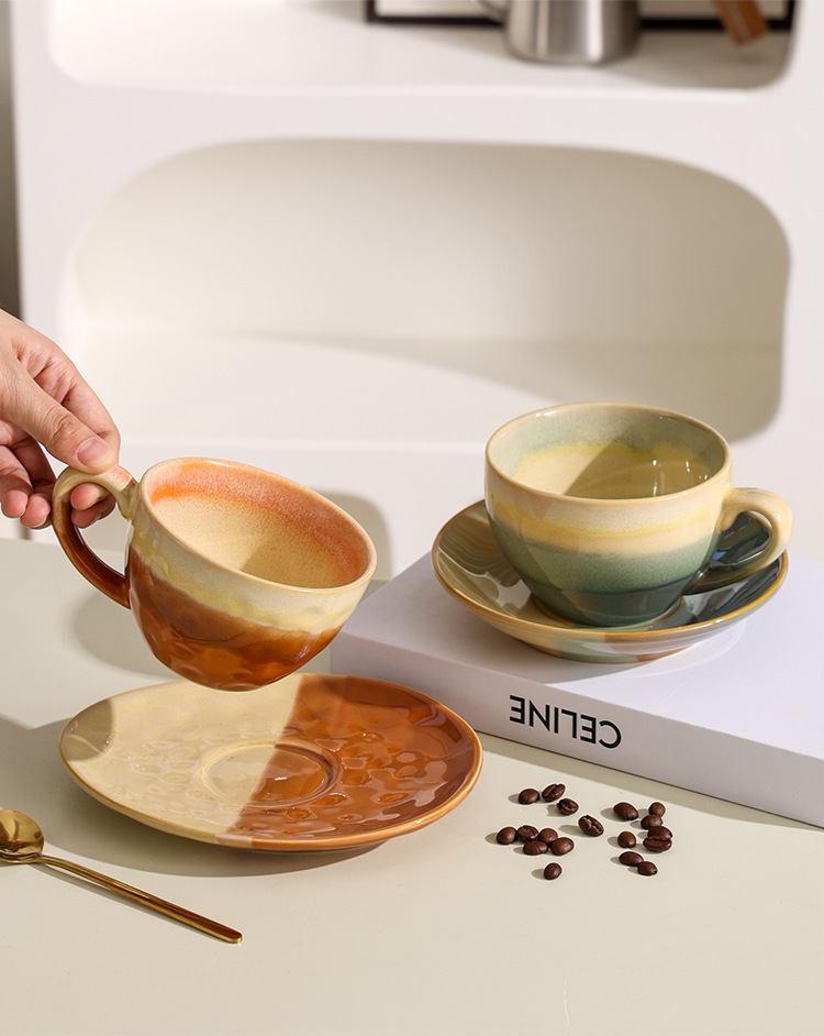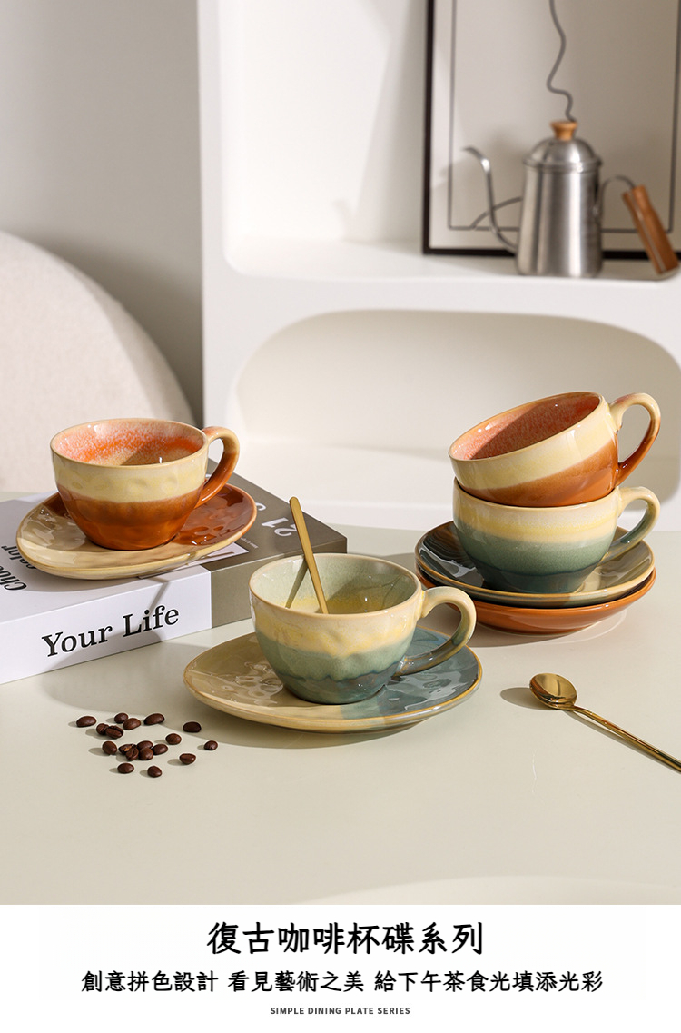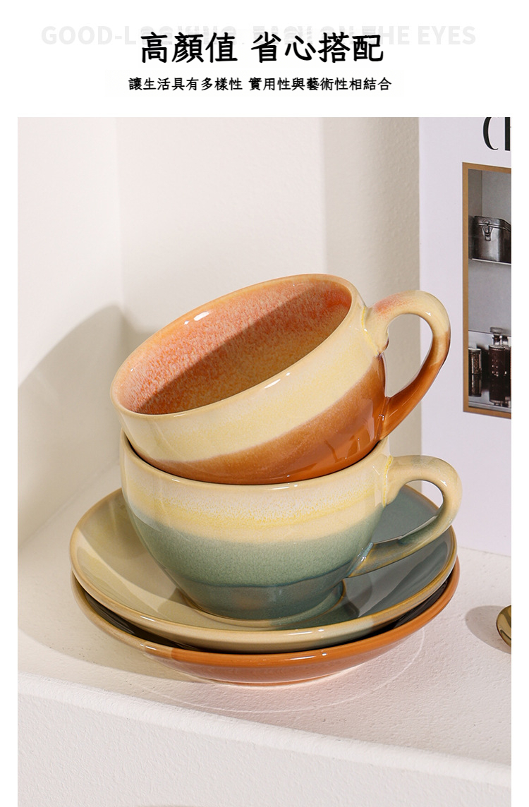 撞色咖啡杯碟套