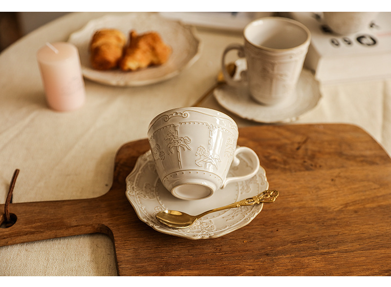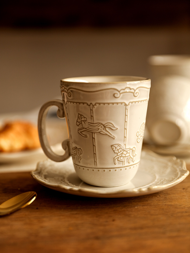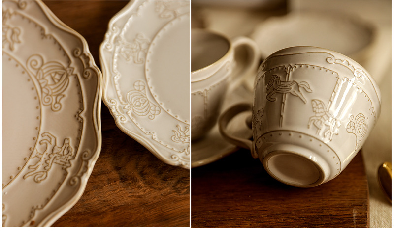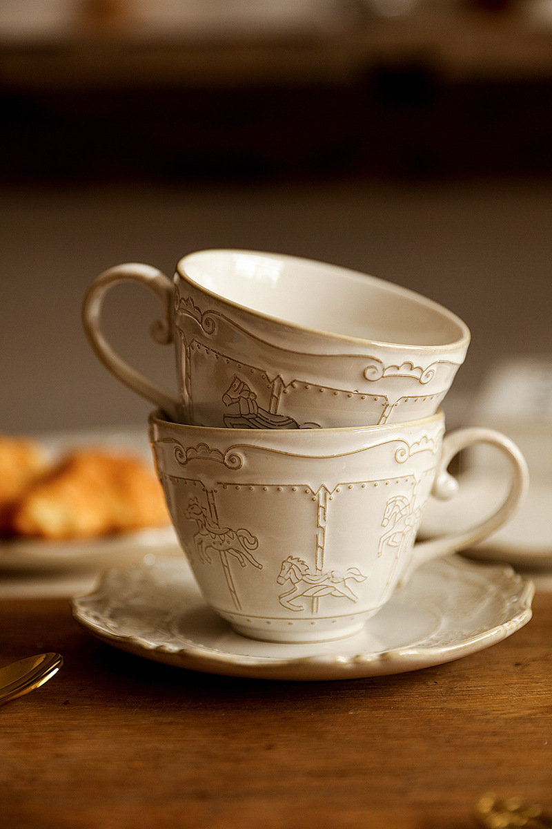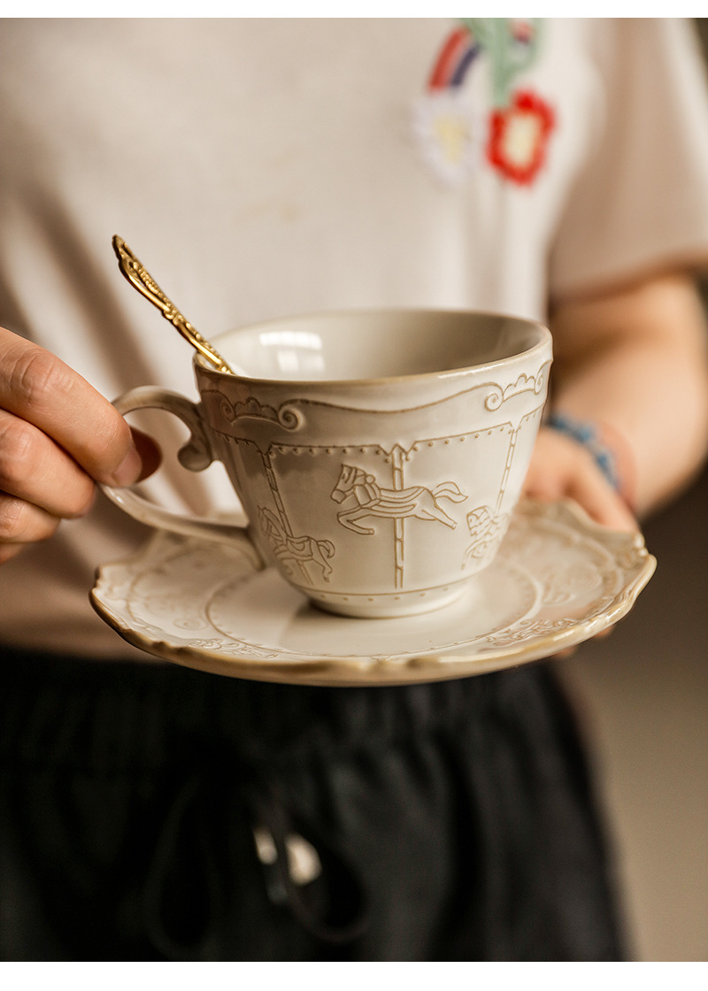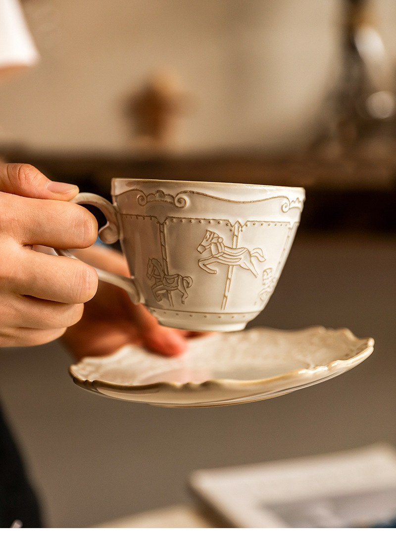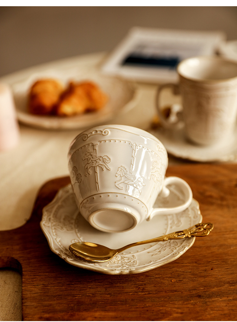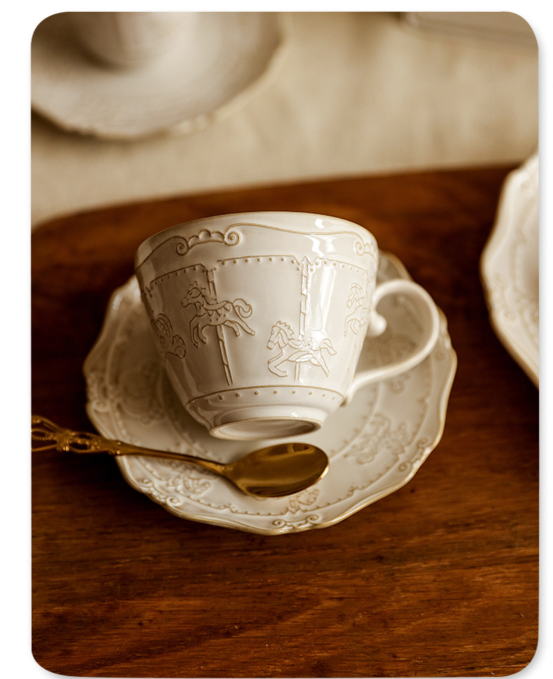 法式復古浮雕旋轉木馬陶瓷咖啡杯碟