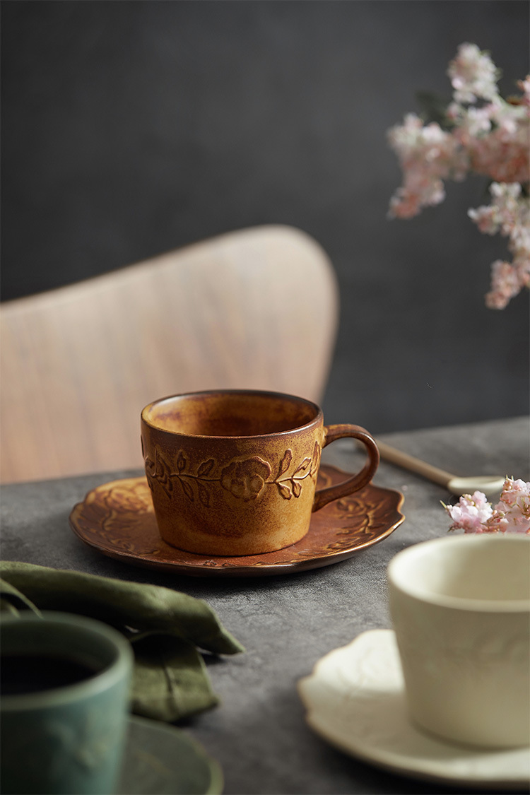 浮雕陶瓷咖啡杯碟