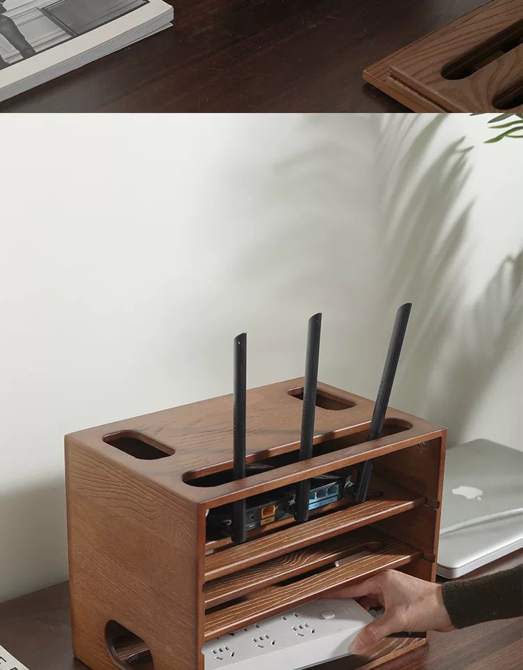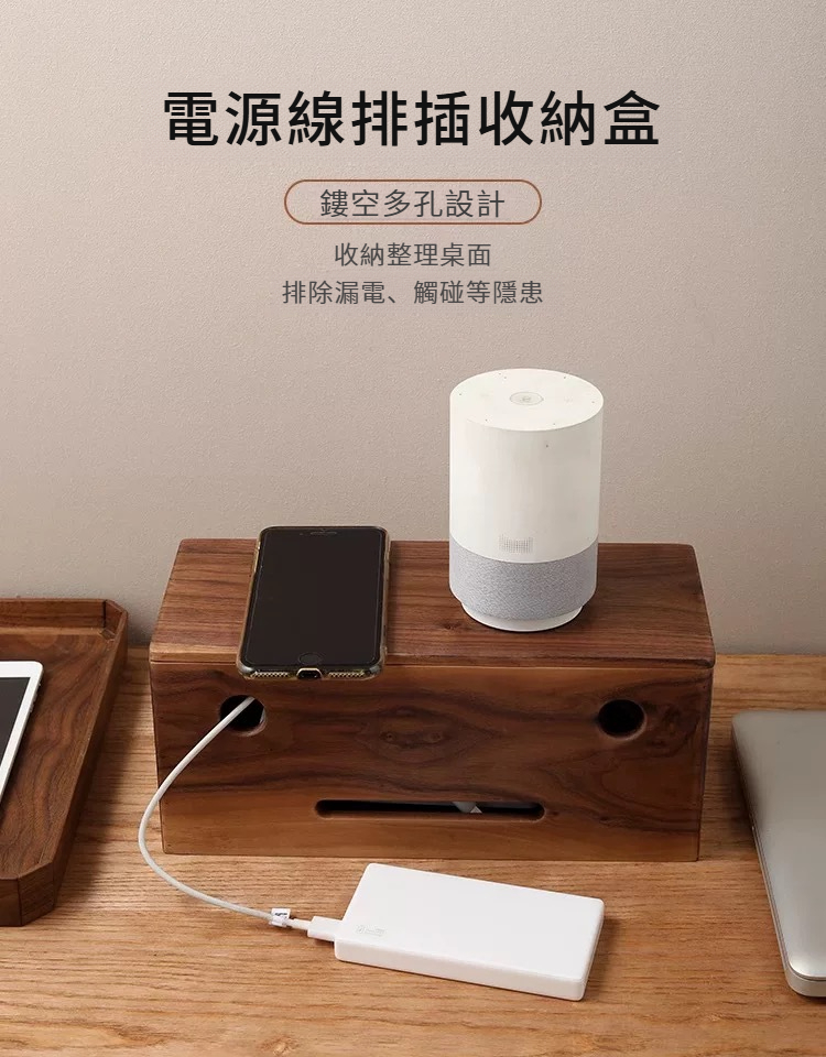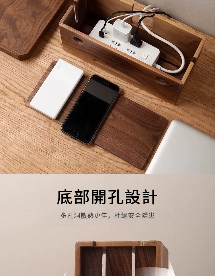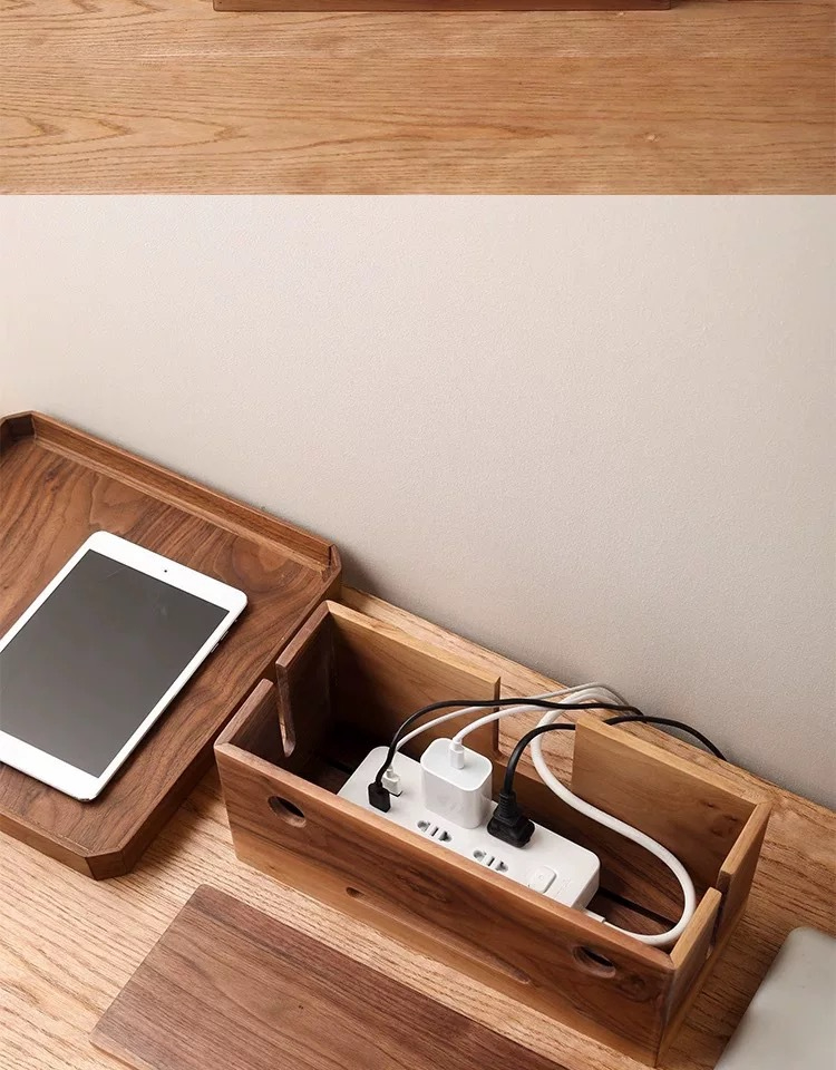 胡桃木插排收納盒
