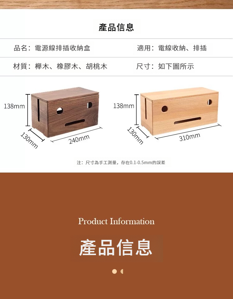 胡桃木色電源線收納盒(小)