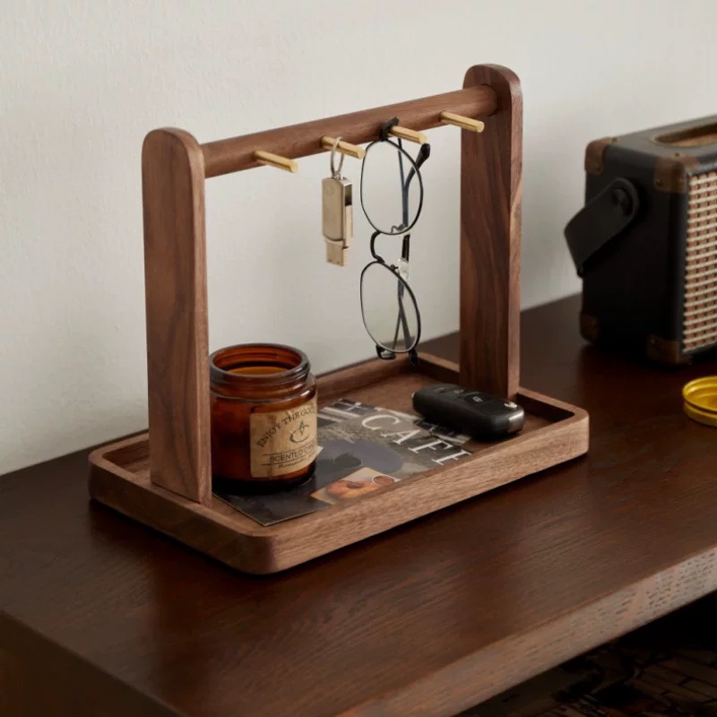 胡桃木玄關置物架首飾掛鉤