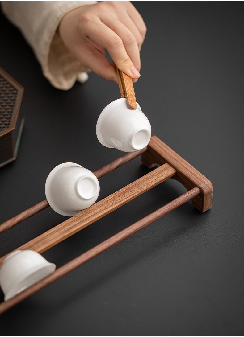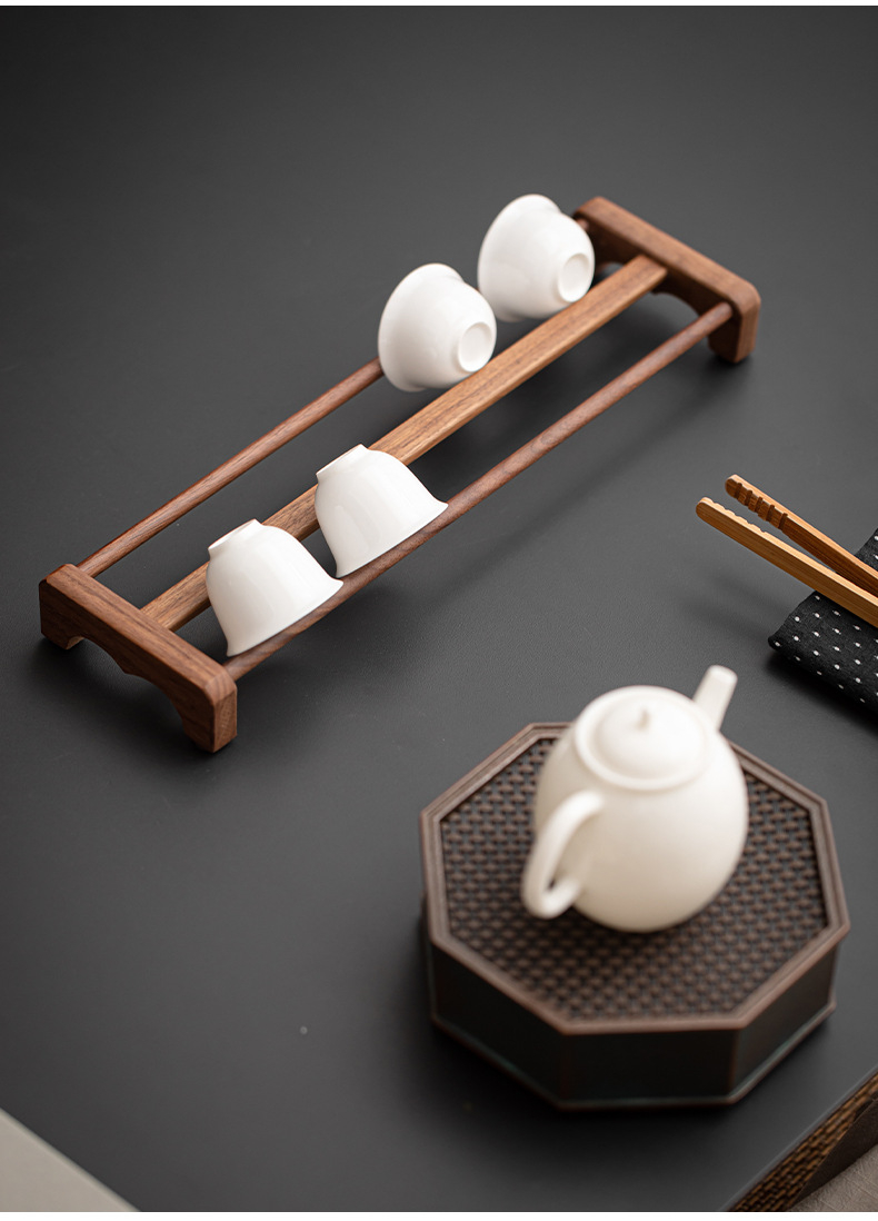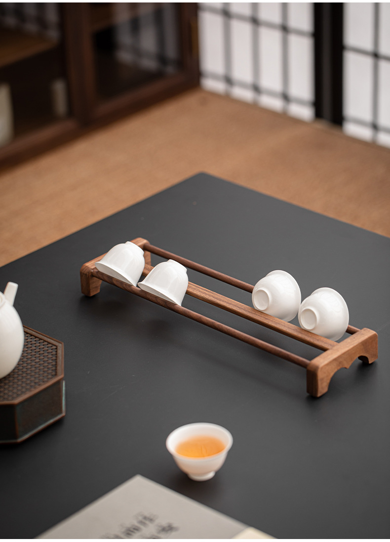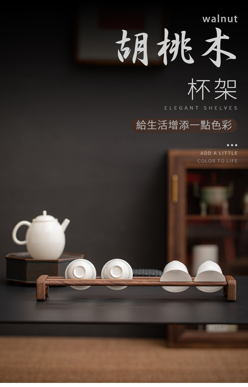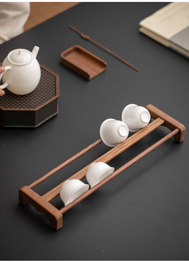 胡桃木茶具收納架